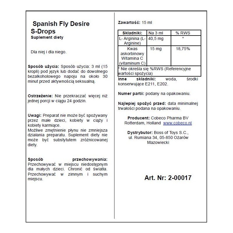 Fenomenalne krople, przyczyniające się do pobudzenia sprawności seksualnej. Produkt wspomaga: poprawę sprawności seksualnej, stymulację energii erotycznej, poprawę witalności oraz pobudzenie pożądania seksualnego. Krople mogą być stosowane przez mężczyzn i kobiety.