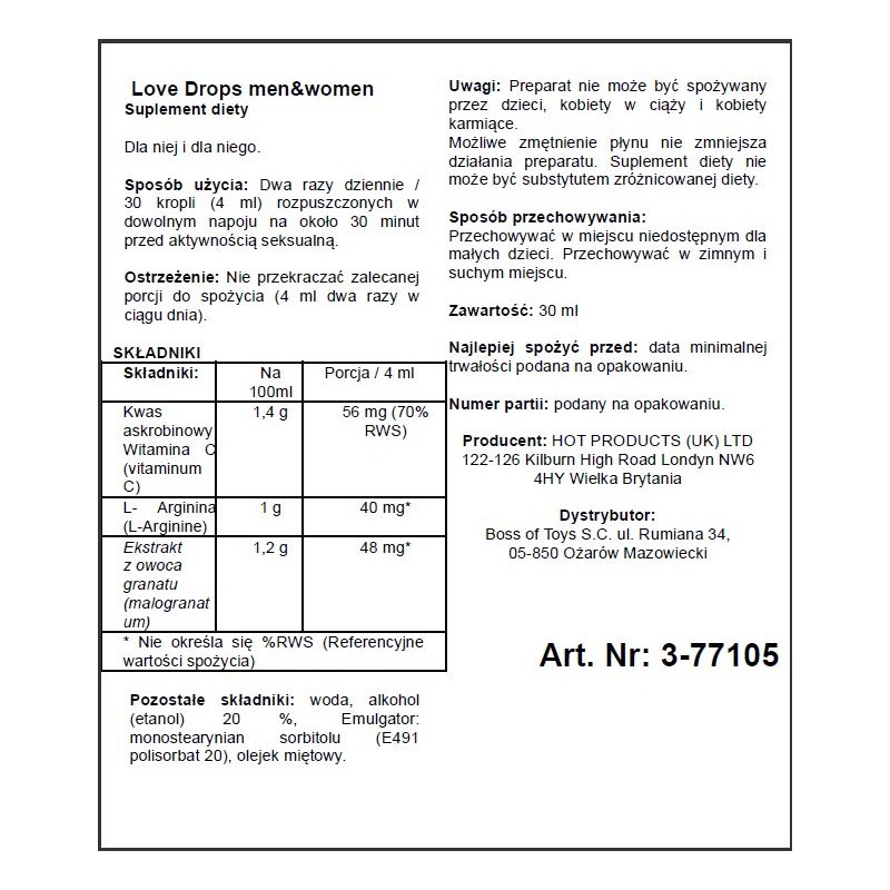 Supl.diety-Love Drops (m+w) 30ml - Hot