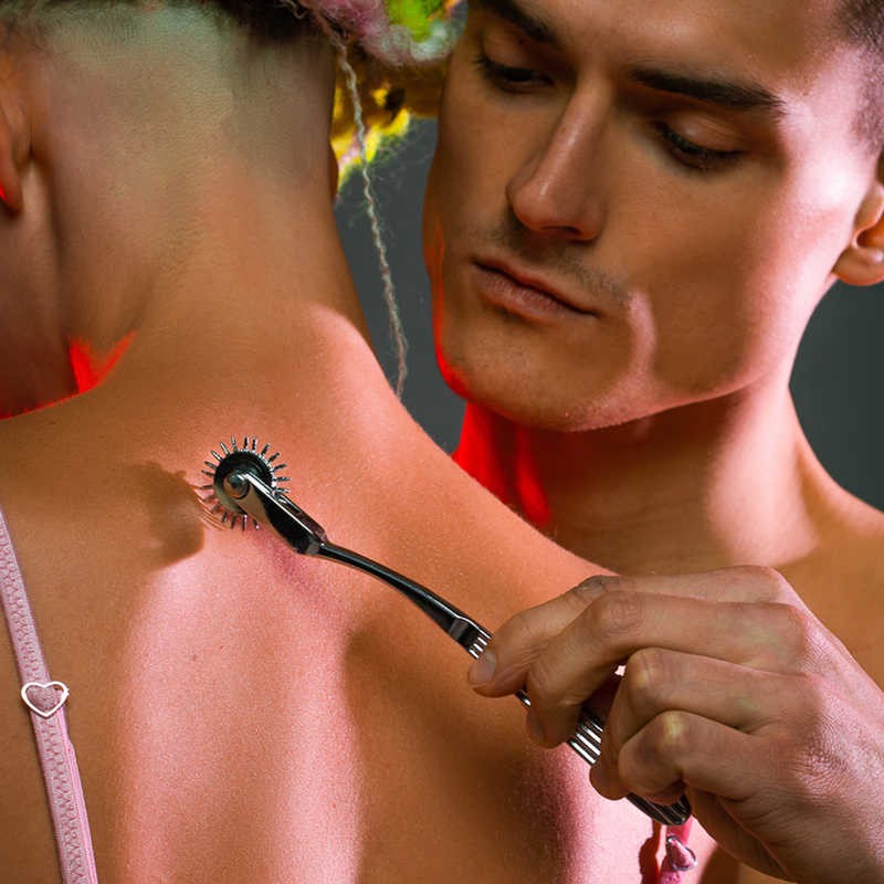 Klasyczne koło Wartenberg. Zabawka dokładnie powtarza słynny dodatek medyczny, który jest popularny wśród fanów gier fetyszowych i BDSM. Jest to zakrzywiona, płaska rączka, wygodna do trzymania w palcach, na której zamocowane jest małe kółko pokryte ostrymi kolcami. Kiedy toczysz nim po ciele, pojawiają się intensywne, bardzo ekscytujące bolesne doznania, które płynnie przechodzą w słodkie intymne doznania. Potencjał tej zachwycającej zabawki jest po prostu nieograniczony, a możliwości zastosowania określa tylko Twoja wyobraźnia.