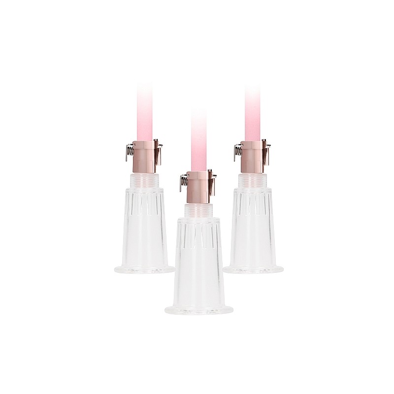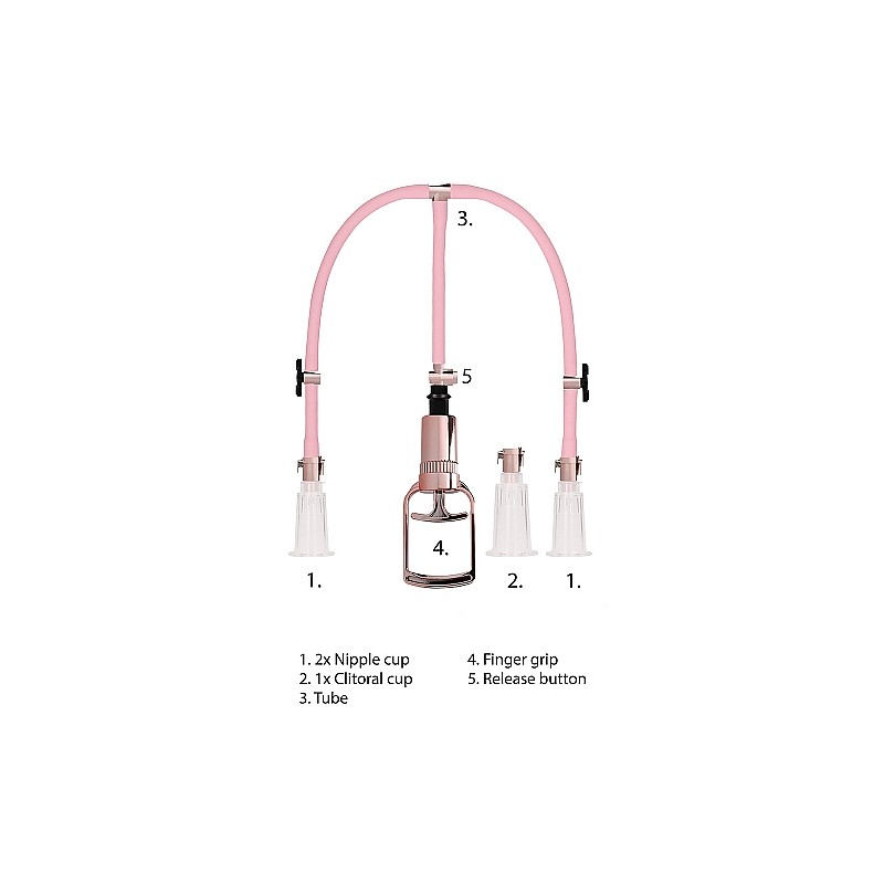 Odczuj stymulację poprzez ssanie dzięki pompce do sutków oraz łechtaczki.skorzystaj z niej, aby zwiększyć czułość łechtaczki lub sutków, zwiększając odczucia płynące z zabawy. Cylinder ten łatwo przymocować do danej strefy erogennej, po .czym nacisnąć pompkę, aby zgromadzić krew w danym obszarze ciała. Poczujesz ssanie, a Twoja łechtaczka zwiększy tymczasowo swoje rozmiary i wrażliwość. Możesz w łatwy sposób zwolnić ciśnienie w cylindrze, naciskając przycisk zwalniający na główce. Możesz też odczepić cylinder z przemysłowego akrylu od pompy za pomocą prostego układu zaciskowego, utrzymującego łechtaczkę wjednej pozycji. Ciesz się wyjątkowymi i zupełnie nowymi odczuciami dzięki prostemu układowi pompowania. „Kompatybilna ze wszystkimi rodzajami lubrykantów. Korzystaj nie dłużej niż 30 minut w przypadku obu piersi. Zestaw wyposażony jest w 3 przyssawki, wąż z 2 końcówkami oraz 1 pompkę ręczną.