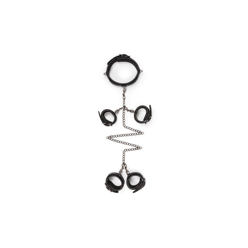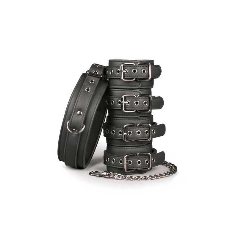 Kajdanki-Fetish set with collar, ankle- and wrist cuffs - EasyToys