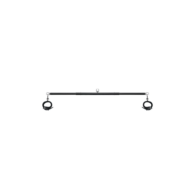 Ogranicz ruchy swojego partnera tym mocnym metalowym prętem rozporowym z kajdankami. Listwę można zamontować na suficie za pomocą pierścienia typu D na górze belki. Sam pasek można ustawić w zakresie od 70 cm do 90 cm. Mankiety można łatwo dopasować. Mankiety są przymocowane do paska za pomocą klamer, dzięki czemu można je odłączyć i używać mankietów oddzielnie. Możesz również użyć pierścienia na obu końcach, aby przymocować inne zabawki związane z BDSM, takie jak mankiety na kostki, do belki rozporowej.