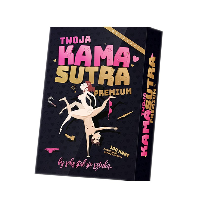 Zestaw zawiera 100 kart z pozycjami kamasutry, każda pozycja jest zilustrowana oraz opisana.