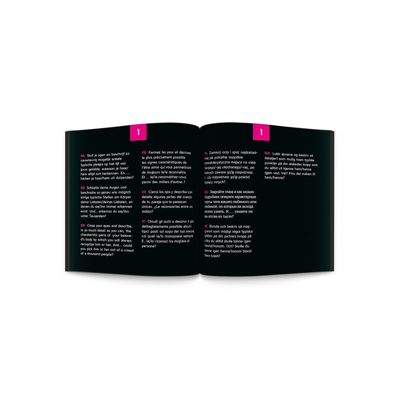 24 wyzwania w edycji Love & Marriage są dostępne w 10 językach: angielskim, hiszpańskim, francuskim, niemieckim, holenderskim, polskim, rosyjskim, włoskim, szwedzkim i norweskim. przyjemność. Czy jesteś wystarczająco niegrzeczny, aby się zanurzyć? Przeżyj razem swoje pełne miłości i erotyczne chwile.