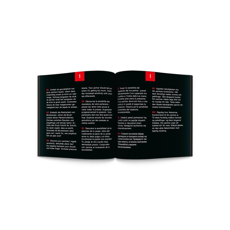 24 wyzwania w edycji Kinky są dostępne w 10 językach: angielskim, hiszpańskim, francuskim, niemieckim, holenderskim, polskim, rosyjskim, włoskim, szwedzkim i norweskim iz pewnością dodadzą ekscytującego akcentu Twojemu życiu seksualnemu. Spełniona sekretna fantazja czy odkrywanie nowych doznań? Odkryj swoje granice, poszerzaj swoje horyzonty i ciesz się intymnością. Czy jesteś wystarczająco niegrzeczny, aby się zanurzyć?