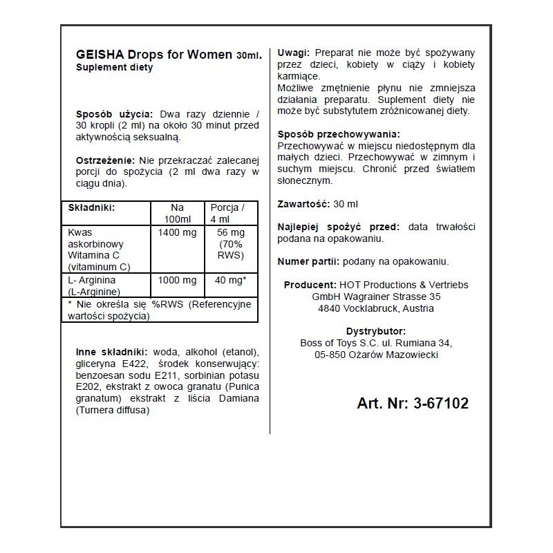 Supl.Diety-Shiatsu GEISHA Drops for Women 30ml. - Hot