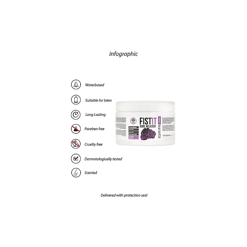 Fist It jest żelem nawilżającym wyprodukowanym na bazie wody. Można go używać jednocześnie z prezerwatywami lateksowymi. Sposób użycia: nałożyć pożądaną ilość żelu na wybrane części ciała i powtarzać tę czynność dowolną ilość razy. Preparat należy przechowywać w chłodnym i ciemnym miejscu, niedostępnym dla dzieci.