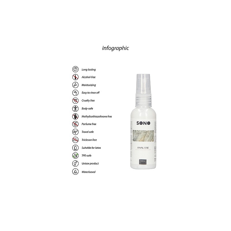 Ten specjalny żel Anal Ese został opracowany, aby ułatwić osiągnięcie pełnej przyjemności analnej. Zawiera łagodny środek znieczulający zwiększający komfort podczas penetracji. Nie do długotrwałego użytkowania. Nie stosować w pobliżu oczu. Trzymać poza zasięgiem dzieci. Jeśli stosowanie Anal Ese powoduje ciągły dyskomfort lub jeśli pojawi się wysypka lub podrażnienie, należy przerwać stosowanie i skonsultować się z lekarzem. Wskazówki: Przed penetracją nałóż niewielką ilość odbytu na obszar odbytu. Odczekaj kilka minut na odczulenie przed próbą penetracji. Właściwa ilość i czas oczekiwania zostaną ustalone po kilku użyciach.