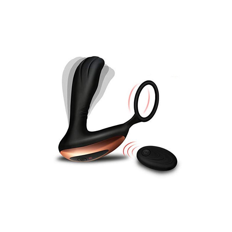 MASAŻER PROSTATY Z BEZPRZEWODOWYM PILOTEM ORAZ PIERŚCIENIEM NA JĄDRA