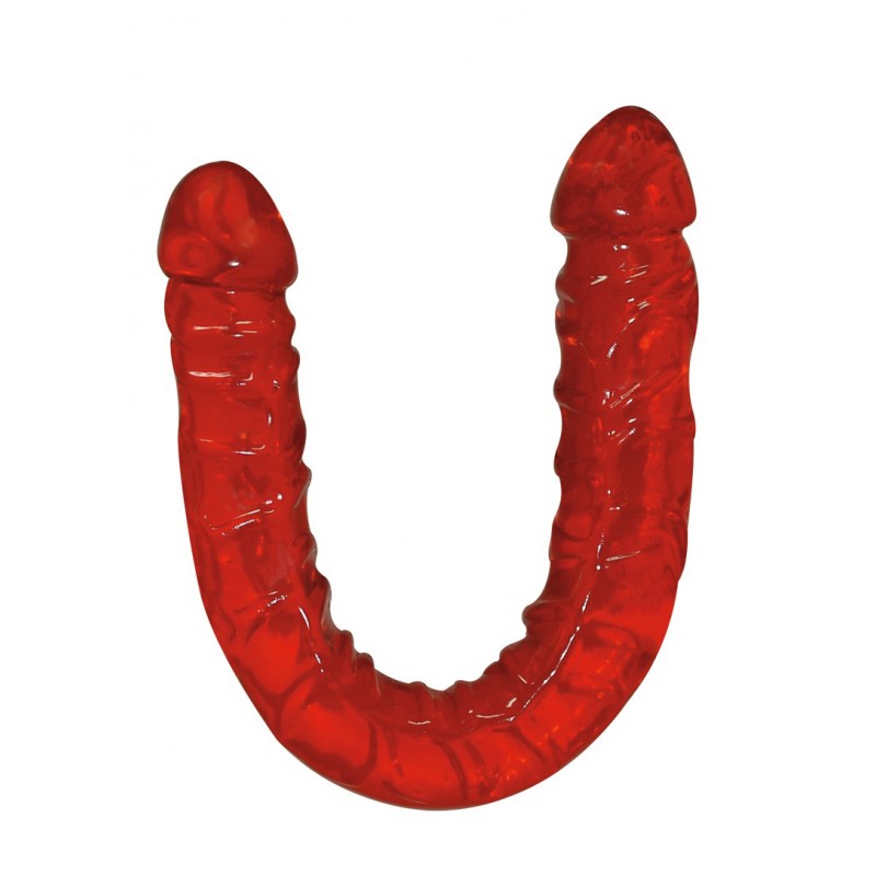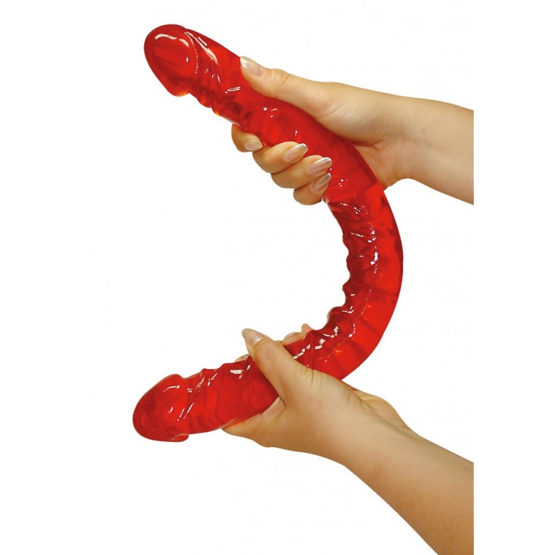 Dla podwójnie napalonej seksualnej żądzy! Wspaniałe podwójne dildo wykonane z materiału o śliskiej galarecie z drażniącymi żyłkami i wybrzuszającymi się żołędziami na każdym końcu. Cudownie elastyczny dla każdej odmiany płci - pojedynczo lub w parach! Około 43 cm długości, średnica 4 cm. Materiał: TPE.