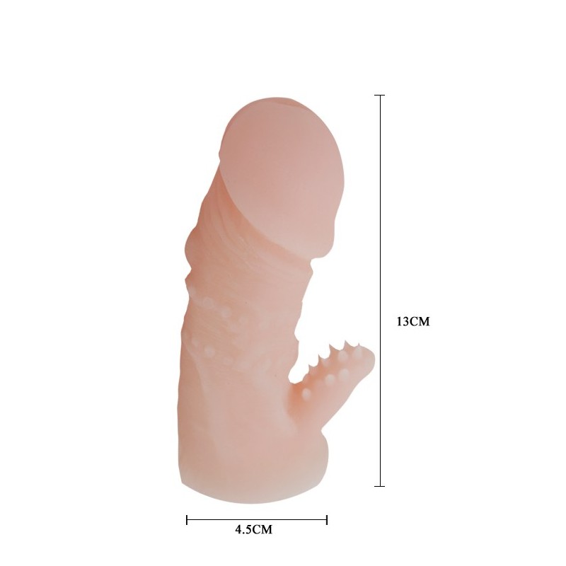 Natychmiastowe zwiększenie długości i obwodu tego rękawa umożliwi głębszą penetrację niż kiedykolwiek wcześniej. Pokryty miękkimi guzkami i żebrowanymi żyłkami rękaw zapewni intensywną wewnętrzną stymulację partnerowi. Elastyczny rękaw TPR będzie ściśle przylegał do wału, dzięki czemu erekcja będzie twardsza i większa o wiele dłużej niż zwykle.