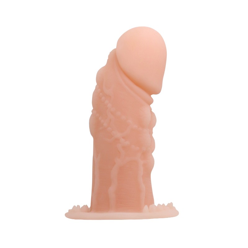 Zamień swojego penisa w niesamowitą maszynę mocy dzięki temu intensywnie stymulującemu rękawowi. Miękki i elastyczny rękaw na penisa i przedłużacz penisa, uzbrojony w idealnie ukształtowaną głowę, guzowaty i żyłkowany trzon, zapewniający partnerowi maksymalną stymulację i penetrację. Zdobądź ten elastyczny, gumowy rękaw na penisa, aby spełnić wszystkie swoje marzenia i jej! Świetne przedłużenie penisa wykonane z elastycznej miękkiej gumy. Jeden rozmiar będzie pasował do większości.