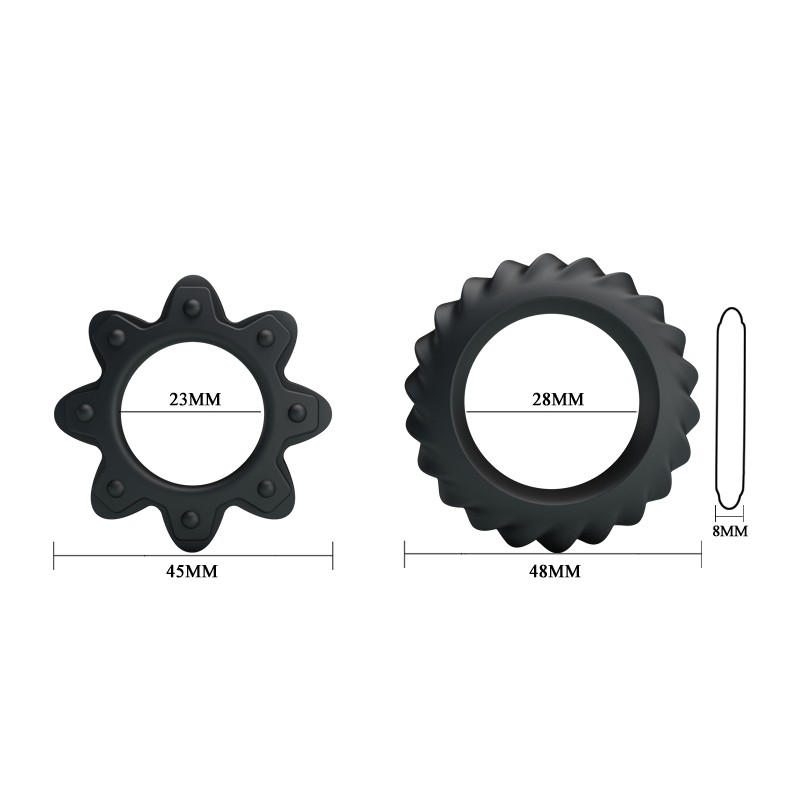 Spójrz na część i daj jej to, czego chce, dzięki temu fantastycznemu zestawowi czarnych pierścieni na penisa. Dwa różne wzory w każdym opakowaniu i bardzo rozciągliwe. Noś pojedynczo lub wszystkie razem, aby uzyskać maksymalną wydajność. Wykonany z silikonu, który jest bezpieczny dla skóry, ponieważ nie zawiera lateksu ani ftalanów. Wysokiej jakości pierścienie na penisa zapewniające mocne i długotrwałe erekcje - ten zestaw przetrwa lata.