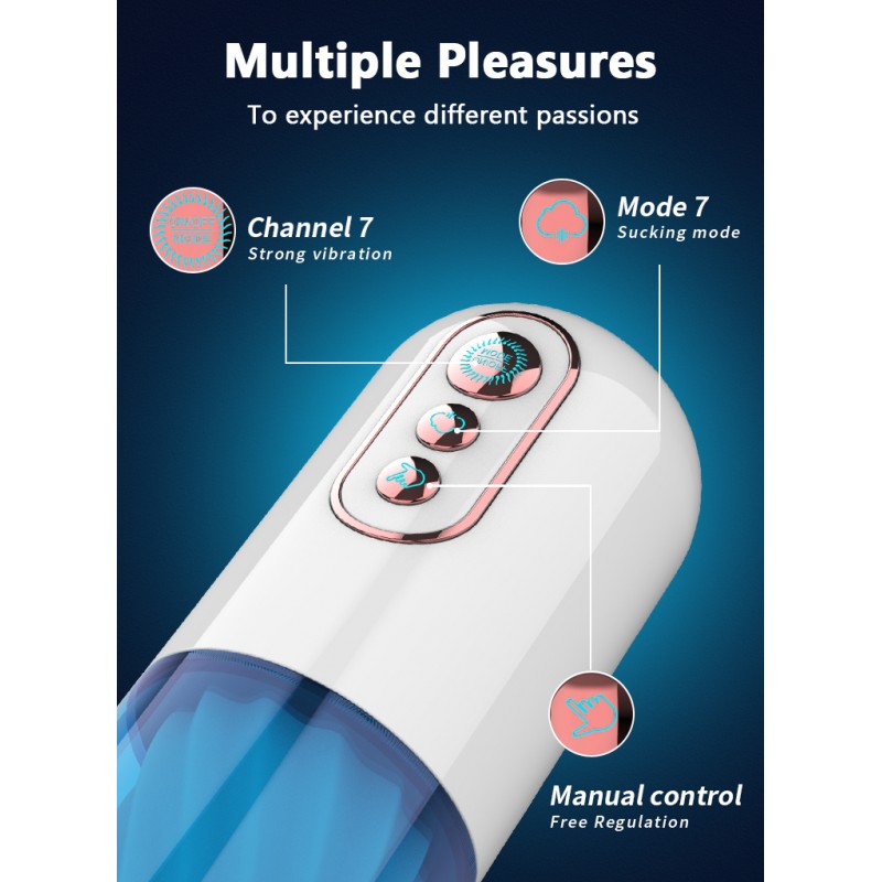 Wewnętrzna komora, wyposażona w liczne wypustki dla dodatkowej stymulacji. 7 funkcji wibracji oraz 7 unikalnych trybów ssących, dostarcza niesamowite i niezapomniane wrażenia seksualne.