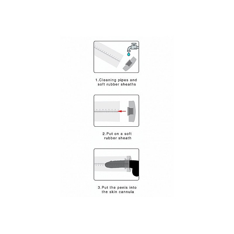 Całkowita długość wynosząca 23cm oraz 6cm średnicy sprawiają, że ta wysokiej jakości pompa oferuje masę możliwości, jeżeli chodzi o ?wzrost w każdym kierunku! Całkowita długość węża wynosi 25cm, a jego wnętrze pokryte jest delikatnym tworzywem Silikon. Rozmiar który osiągniesz, za każdym razem wprawi Cię w osłupienie! Sprzęt występuje w wersji przezroczystej oraz w trzech kolorach: niebieskim, czerwonym oraz czarnym. Ten wariant występuje w wersji z solidnym uchwytem na palec oraz komfortowym zaworem zwalniającym!