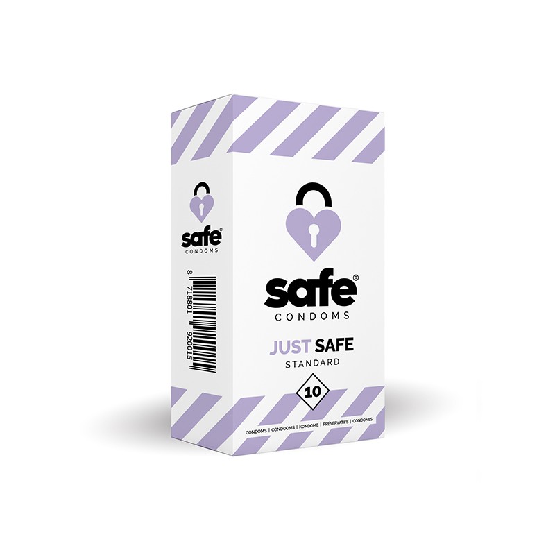 Just Safe to standardowa prezerwatywa o anatomicznym kształcie i pasuje (prawie) do każdego (dla innych, zobacz nasze prezerwatywy Safe XL). Prezerwatywy Just Safe są wyposażone w silikonowy lubrykant o lekkim i nienachalnym zapachu wanilii. Prezerwatywy Just Safe mają długość 19 cm i nominalną szerokość 5,6 cm i są dostępne w opakowaniach po 5, 10 i 36 sztuk.