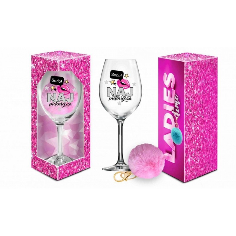 LADIES TIME - kieliszek do wina Signoria 700ml + pompon - Najpiękniejsza - BGtech
